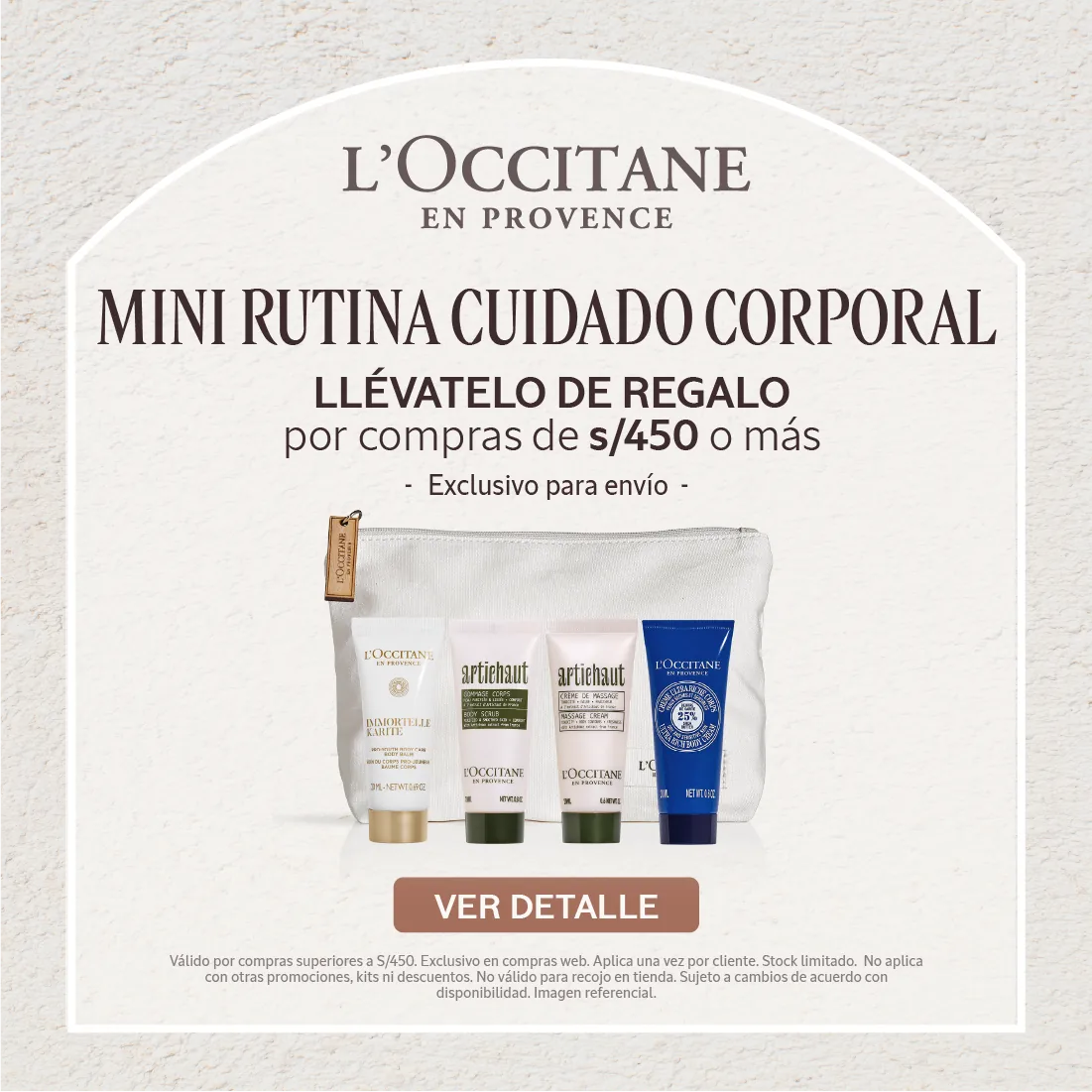 Valido por compras superiores a S/450. Aplica una vez por cliente. Stock limitado. No aplica con otras promociones, kits ni descuentos. Sujeto a cambios de acuerdo con disponibilidad. Imagen referencial.