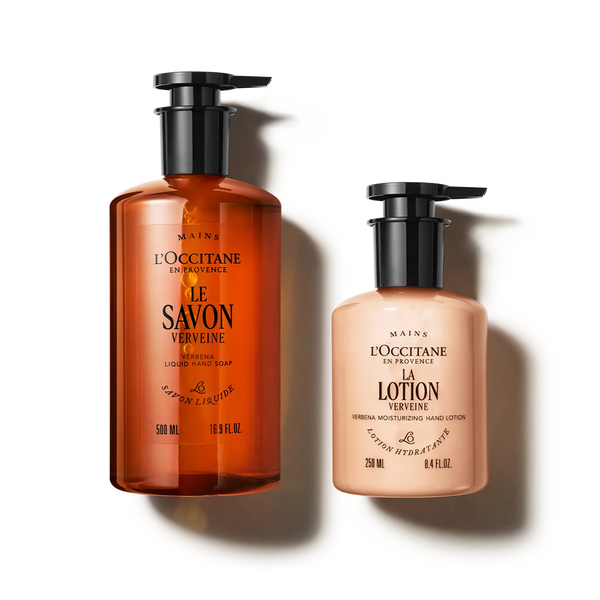 El dúo perfecto para limpiar e hidratar las manos, dejándolas suaves y delicadamente perfumadas con Verbena.