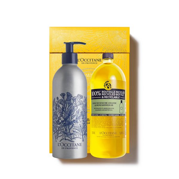 Una combinación perfecta que incluye un envase reusable de 500ml y una recarga de aceite de ducha Almendra. Enriquecido con aceite de almendra dulce, limpia con suavidad, preservando la hidratación y dejando una fragancia sutil y delicada de almendras frescas de la Provenza.