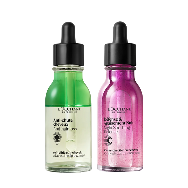 Un ritual completo para un cuero cabelludo fuerte y equilibrado. El Sérum Anticaída reduce la caída, estimula el crecimiento y fortalece la hebra capilar, mientras que el Sérum Calmante de Noche alivia irritaciones, refuerza defensas y regenera durante el descanso. Juntos, revitalizan, protegen y aportan confort para despertar con un cabello más sano, denso y resistente.