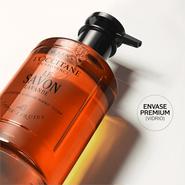 Su fragancia relajante de lavanda se envuelve en notas florales de jazmín, evocando un paisaje provenzal sereno y luminoso. Su diseño atemporal, inspirado en los frascos de botica, junto a su práctico dosificador, reflejan la autenticidad de un proceso artesanal único.