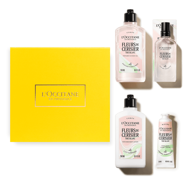 Descubre el ritual completo Fleurs de Cerisier Thé Blanc edición limitada, una colección creada para limpiar, hidratar y perfumar delicadamente la piel con una elegante fragancia floral inspirada en la flor de cerezo y la sutileza del té blanco. Esta rutina combina el gel de ducha, la loción corporal, la crema de manos y el eau de toilette para prolongar una estela fresca, femenina y sofisticada en cada aplicación.